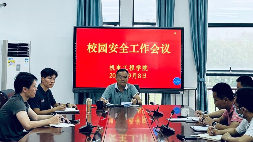 9月8日下午,机电工程学院在学院会议室召开校园安全工作会议。专业主任(部长)及以上人员参加会议,钟建坤院长主持会议。