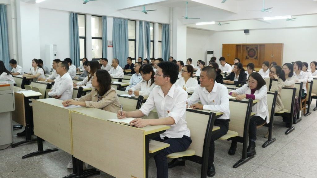 钟建坤同志首先介绍了党的二十大的主题和重大意义,接着从过去五年的工作和新时代十年的伟大变革、开辟马克思主义中国化时代化新境界、新时代新征程中国共产党的使命任务等十五方面解读大会精神,结合学校工作实际对“实施科教兴国战略,强化现代化建设人才支撑”等进行重点解读,并分享领学了党的二十大报告的金句。钟建坤同志强调,教师党员必须全面贯彻党的教育方针,落实立德树人根本任务,培养德智体美劳全面发展的社会主义建设者和接班人,为社会经济发展输送更多高素质技术技能人才;师生党员必须全面学习、领会、贯彻习近平新时代中国特色社会主义思想,不断增强责任感、使命感,踔厉奋发、勇毅前行,以实际行动做心中有信仰、肩上有担当、脚下有力量的中国共产党党员。