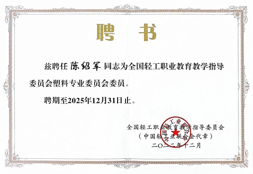 3月23日至3月25日,全国轻工职业教育教学指导委员会(2021-2025)成立大会在四川成都举行。来自全国各地的轻工职业教育专家和学者齐聚一堂,共同探讨轻工职业教育的现状和未来,促进教育教学的发展和创新。我校教师陈绍军副教授入选全国轻工职业教育教学指导委员会委员(以下简称行指委)及塑料专委会委员。