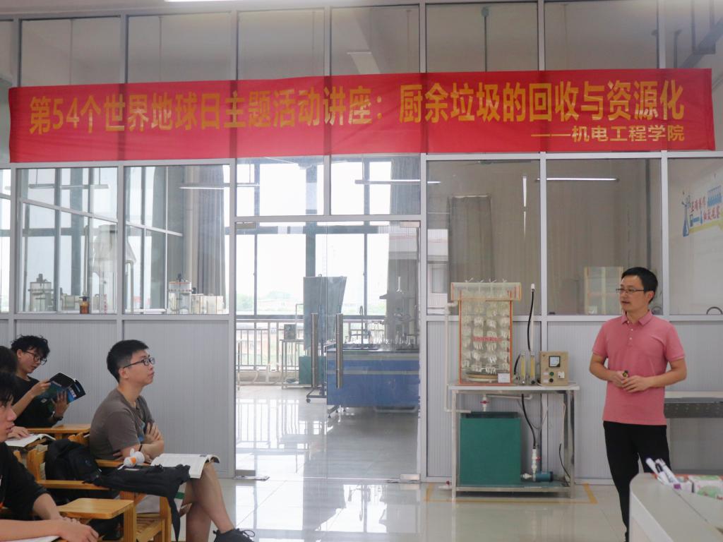 为纪念4月22日第54个世界地球日,机电工程学院举行了“厨余垃圾的回收与资源化”主题讲座和志愿服务活动。