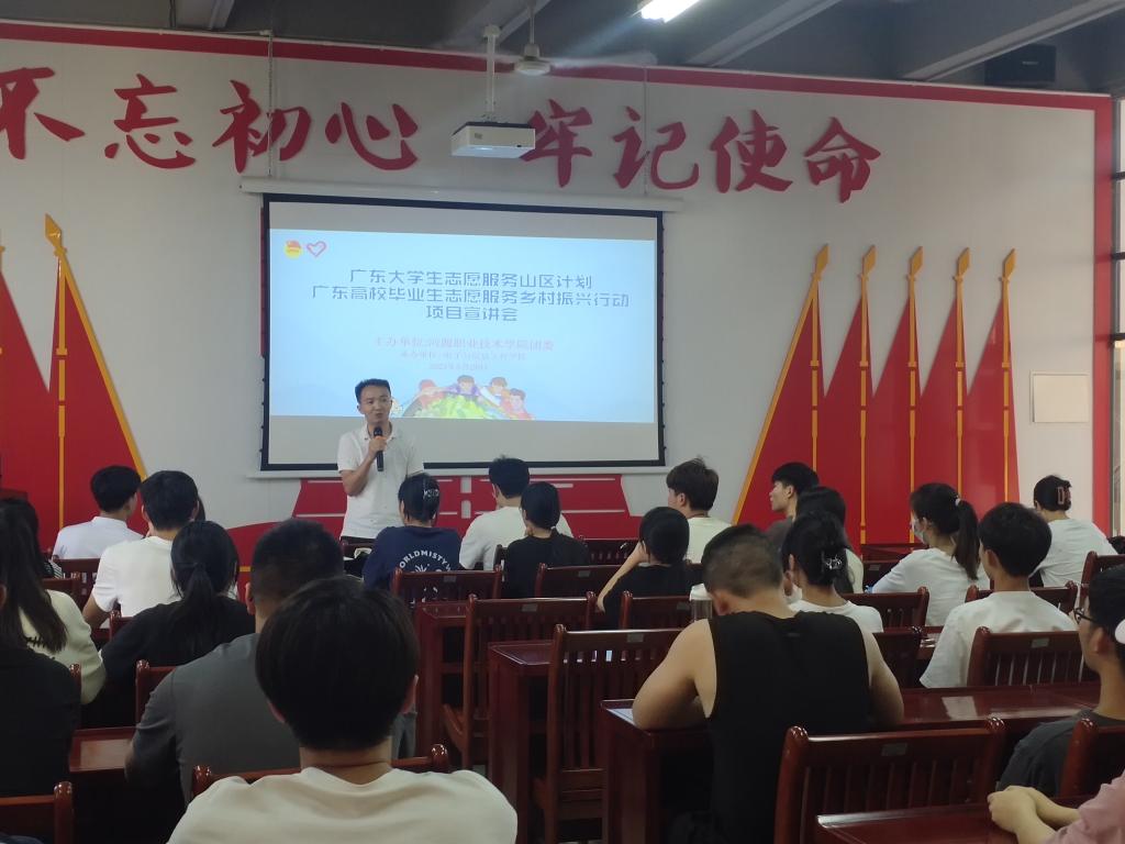 为引导和鼓励广大高校毕业生积极响应志愿服务乡村振兴行动,让广大青年学子返乡助推乡村振兴,共促城乡区域协调发展。电子与信息工程学院于5月26日下午4点在实训楼开展广东省毕业生志愿服务乡村振兴宣讲会。宣讲会邀请了连平县三角镇乡村振兴驻镇帮扶工作队队员我校2020届计算机网络技术专业校友刘家兵担任主讲嘉宾,会议由电信学院团委书记罗细兵老师主持。
