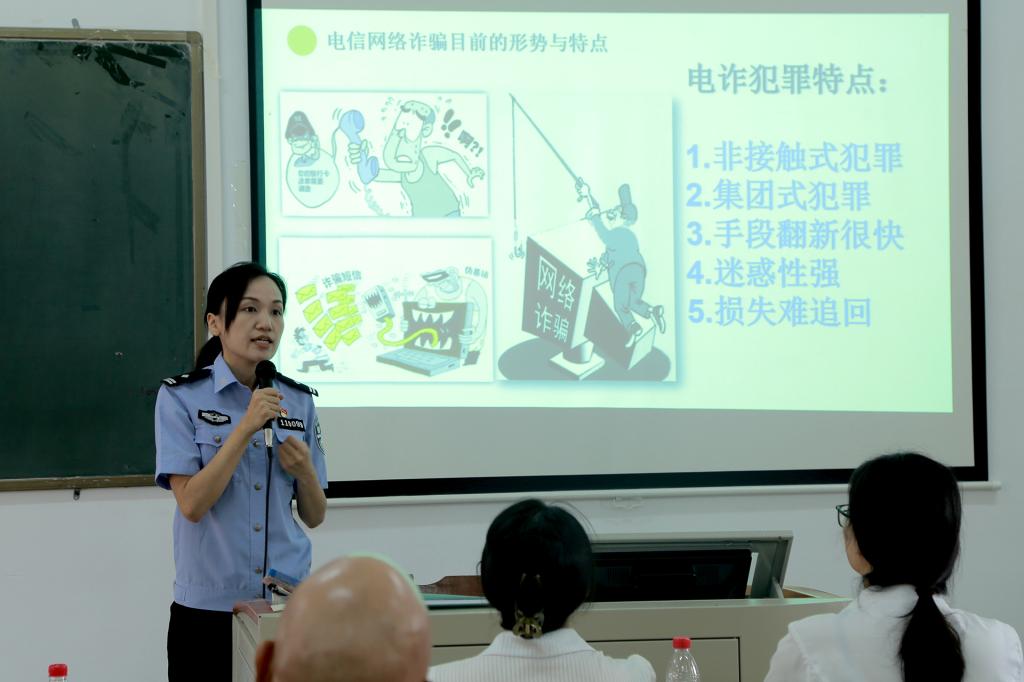 在防范电信网络诈骗专题讲座中,谢梦忆教导员等介绍了电信网络诈骗常见手段、防范措施及反洗钱相关知识,以“小故事传递大道理”为宣讲主线,结合近期发生的真实案例,详细介绍了电信网络诈骗新手段,提醒老师们要时刻保护好个人信息,警惕洗钱陷阱,不给犯罪分子任何可乘之机,积极关注防诈骗相关社交媒体账号,充分利用媒体宣传力量敲响安全警钟,并号召老师们将相关知识及时传达给同学们,共筑平安校园。