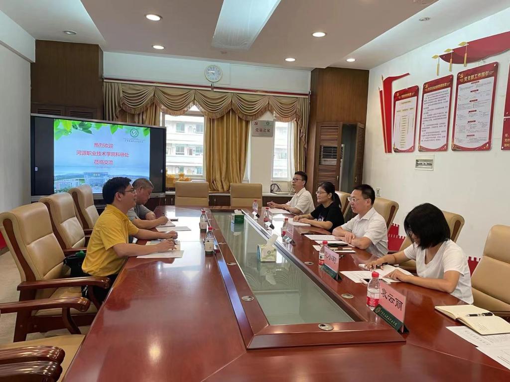 广东食品药品职业学院科研处相关负责人,对来访表示热烈欢迎,并对广东食品药品职业学院的科研成果情况、科研激励考核制度、科研队伍建设、科研工作经验与做法等进行了详细介绍和分享。廖远兵处长希望以后两校能加强沟通交流,共同促进科研工作的发展。