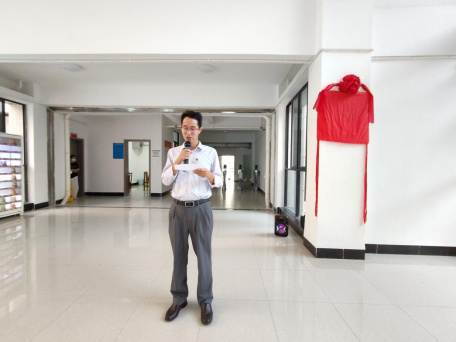 仪式上,教工第一党支部书记白迎超作为教师党员代表发言。他表示,学生宿舍是学生学习生活的重要场所,工商管理学院率先在学生宿舍D5区、B4区、B5区、B6区划分了“党员责任区”,是推动全院党员师生践行主题教育实践成果的新途径,是真正让党员师生时刻走在前面、冲在前面的新举措。