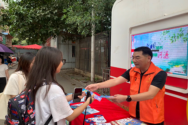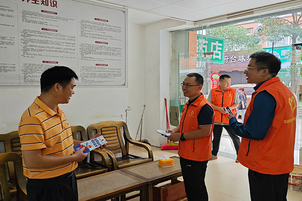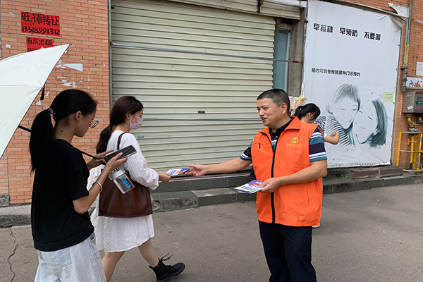 活动伊始,志愿者们在江东新区志愿服务驿站摆设宣传摊位,向居民介绍消防安全知识。随后,志愿者们走进街道商家通过发放宣传单的形式向店铺商家进行宣传。
