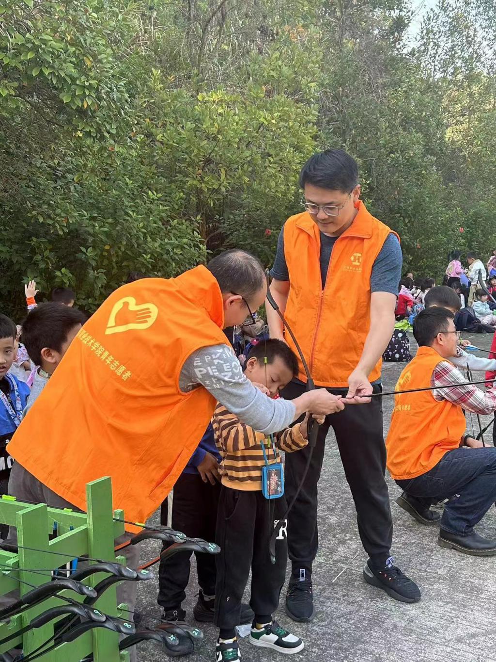 志愿者指导学生射箭活动
