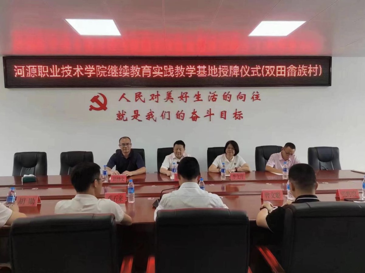 5月17日,继续教育学院与东源县新港镇双田畲族村举行继续教育实践教学基地授牌仪式,学校党委委员、宣传部部长赖新优,继续教育学院院长李文萍、新港镇党委书记丘家锋、学校继续教育学院与新港镇的有关人员、双田畲族村两委班子以及村民党员代表参加授牌仪式。