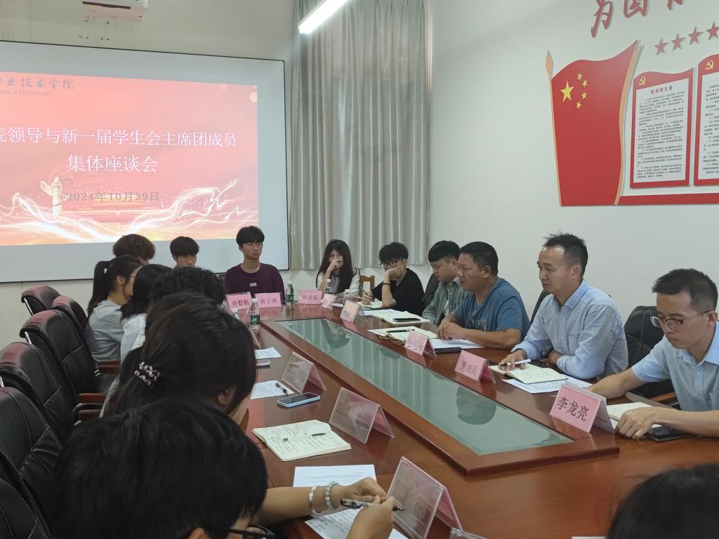 为贯彻落实新时代党的教育方针,加强学院团委学生会的思想建设、组织建设和作风建设,提升学院团委学生会的引领力、凝聚力、服务力、创新力,进一步完善学生自主管理体系,提高团委学生会工作质量。我院于10月29日下午在实训楼B307开展了团委学生会干部座谈会。徐国辉副书记、团委负责人罗细兵老师、辅导员李龙亮老师、辅导员林碧宁老师、电信团委学生会主席团成员及各部门负责人参加,罗细兵老师主持。