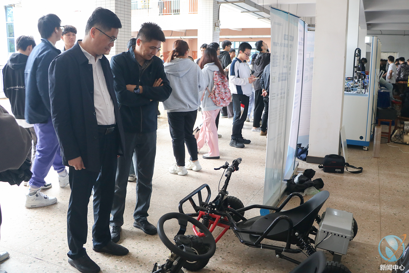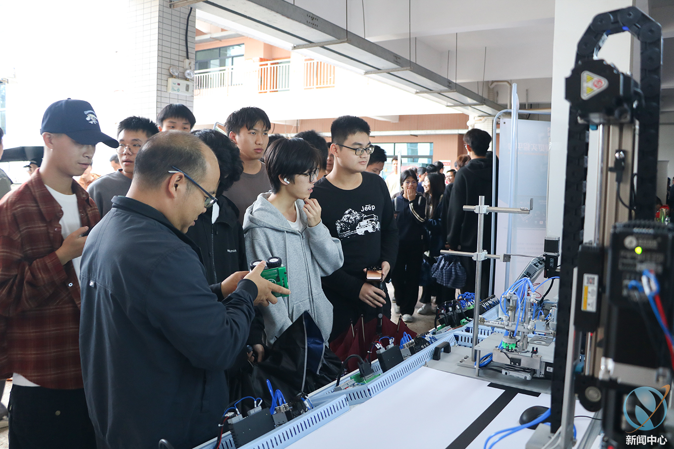 启动仪式后,领导嘉宾前往机电楼二楼,参观校企合作创新成果展览会。