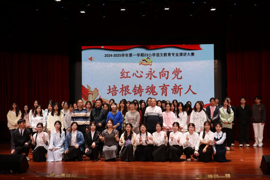 2024年11月19日下午,由老隆师范学院小学语文教育专业教研室主办的“红心永向党,培根铸魂育新人”主题演讲比赛在艺术楼演播厅成功举办。
