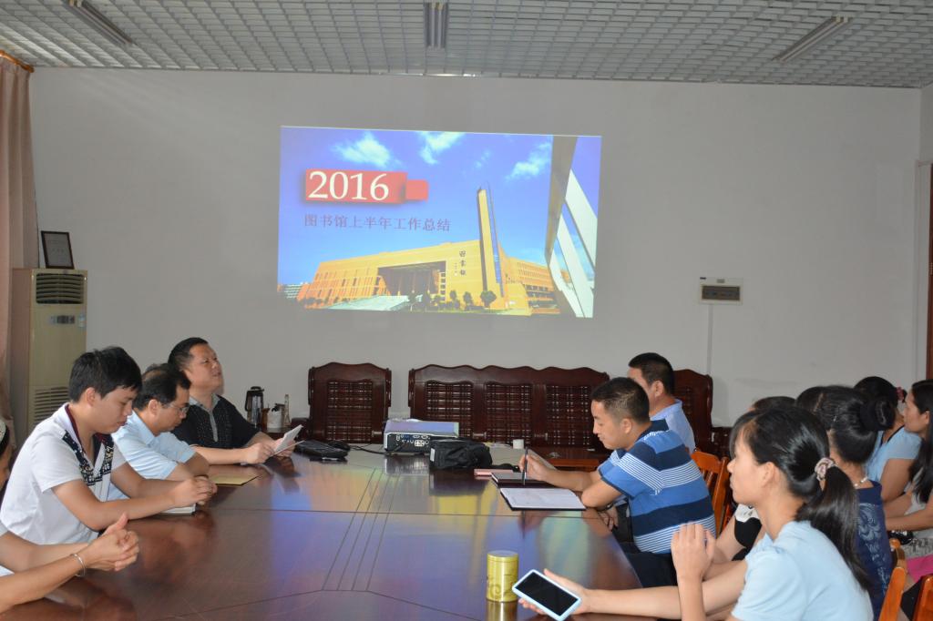 (图书馆通讯员 杨燕)7月11日,图书馆召开全馆总结大会,馆长赖新优对2016年上半年工作进行总结,并对下学期的工作作简要部署。