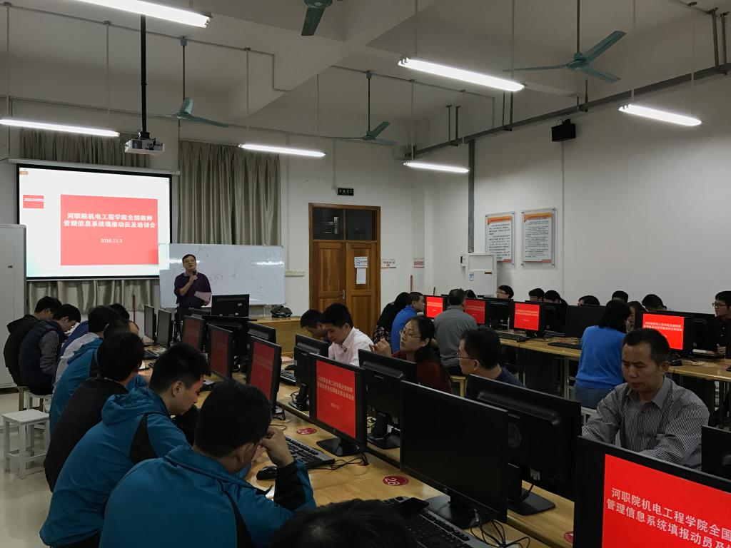 11月3日19:30,机电工程学院在实训楼B303召开了全国教师管理信息系统填报动员及培训会,机电学院全体教职工参加了此次会议。