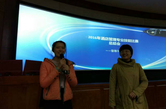 2016年酒店管理专业技能比赛颁奖典礼于12月29日在交流中心3D导游模拟实训室召开。工商管理学院校企合作办张颖主任、酒店管理专业教师和15、16级酒管专业全体学生、参赛选手参加颁奖典礼。