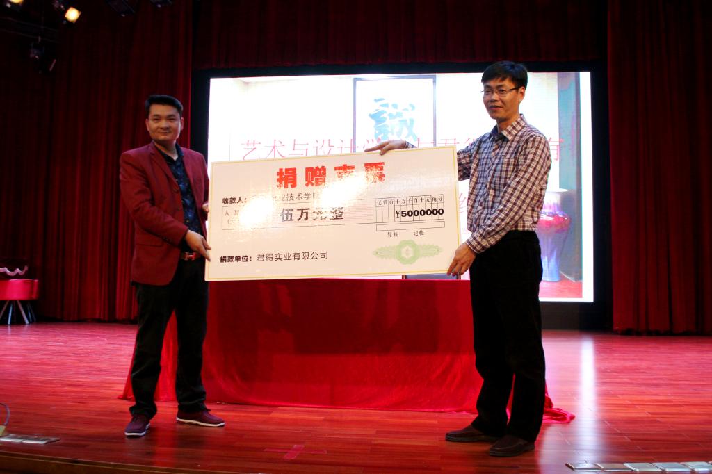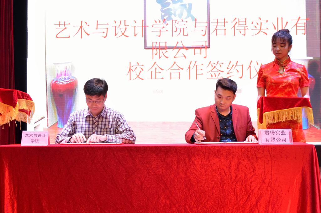 3月13日下午,艺术与设计学院与君得实业有限公司校企合作签约仪式暨捐赠仪式在演播厅举行。艺术与设计学院负责人杜伟祥、副院长王方、团总支书记张超,君得实业有限公司王总、人事部温经理及媒体代表等出席本次仪式。