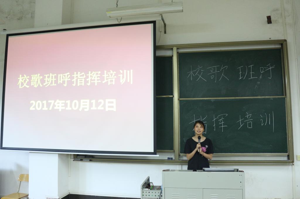 首先,谢国栋老师简要地讲解了校歌的创作过程和创作背景,对2017年校歌班呼比赛、班级班呼创作和校歌班呼展演做了说明,并现场解答了同学们的疑问。