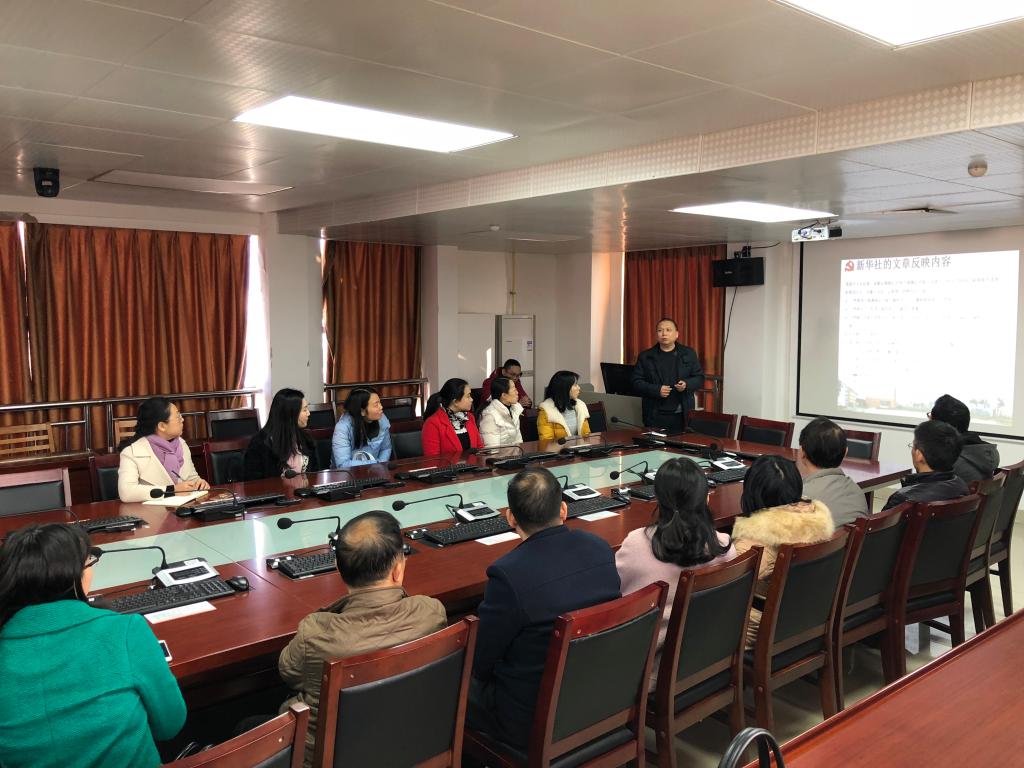 12月19日,人文学院党总支召开党员专题学习会,集中学习贯彻习近平总书记关于进一步纠正“四风”、加强作风建设重要批示精神。会议由党总支副书记罗春娜主持,党总支纪检委员谢战锋同志主讲。