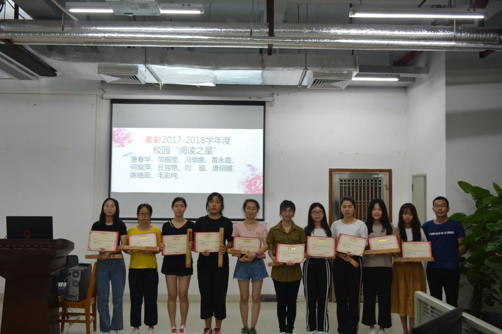 5月25日,我校第十届读书月系列活动闭幕式暨读者交流会在图书馆A502举行,参加闭幕式的有图书馆馆长赖新优、图书馆全体部门主任、各项活动工作人员、获奖学生和读者代表。