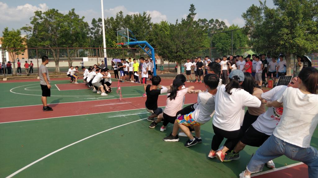 为丰富学院学生校园生活,促进专业之间的友谊交流。2018年5月26日,电信学院在篮球场举行以“团结奋进、健康活力”为主题的专业拔河比赛决赛。参加比赛人员有团总支学生会干部代表、体育部全体委员,各专业代表队,由体育部委员张晓明同学主持。