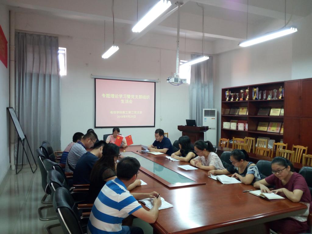 电信学院教工第二党支部于2018年9月29日在实训楼A208召开了以“加强纪律教育,营造良好政治生态”为主题的民主生活会与廉政观影活动。本党支部全体党员参加了此次民主生活会,由党支部书记周永福同志主持。