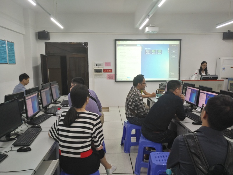 紧接着,调研团队马不停蹄地来到广东邮电职业技术学院。该校计算机学院的王院长以及学院的相关老师对团队的到访表示热烈的欢迎。在学院实训室,梁老师为大家介绍了广东轩辕网络科技有限公司的汇云平台,以及该系统在学院的各种培训项目中的实际运行情况。