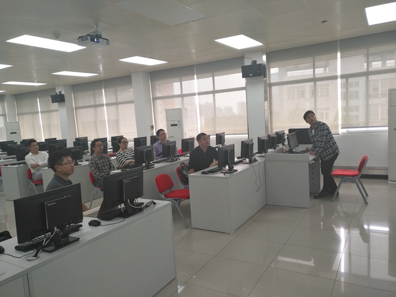 在下午17:00,团队来到广东技术师范学院天河学院,受到计算机学院领导的热烈欢迎。调研团队一行参观了计算机学院的网络机房与大数据技术实训室,负责该项目建设的三盟科技股份有限公司的技术人员介绍了实训室的实训平台与课程资源,对该平台进行了实际的操作演示。