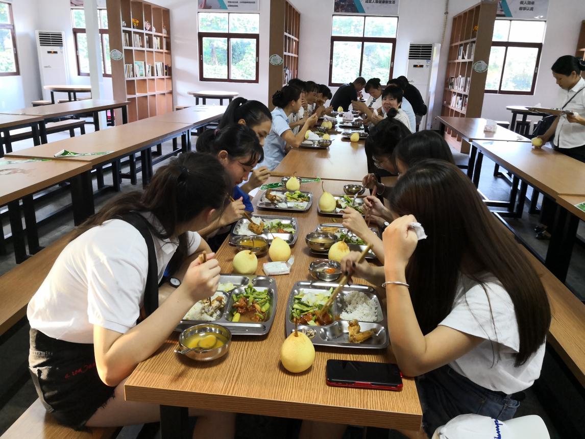 会后,全体师生到客天下员工饭堂体验员工餐,五菜一汤+水果,同学们纷纷为这样的员工餐点赞!